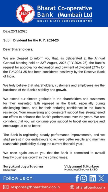 It has been a long journey with Bharat bank from Rs.500 to Rs.250 crores. I have grown with Bharat bank. I always receive prompt service at here.
